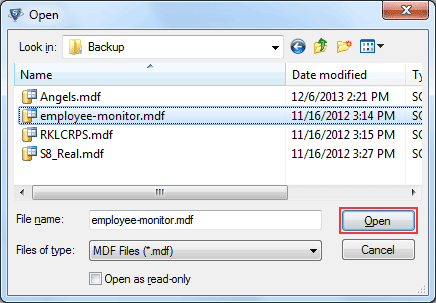 STEP 3: Then choose the corrupt or damaged MDF file and click on Open button.